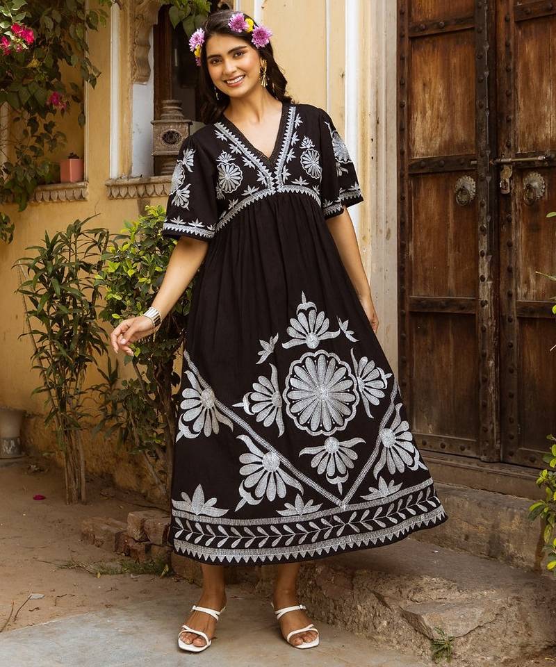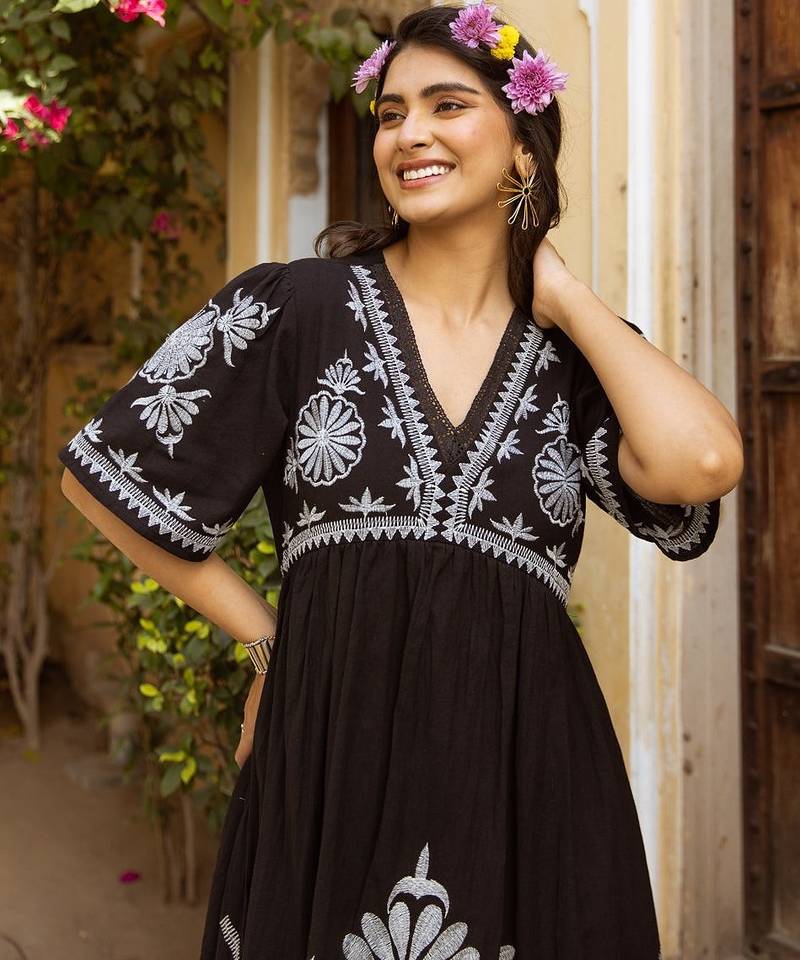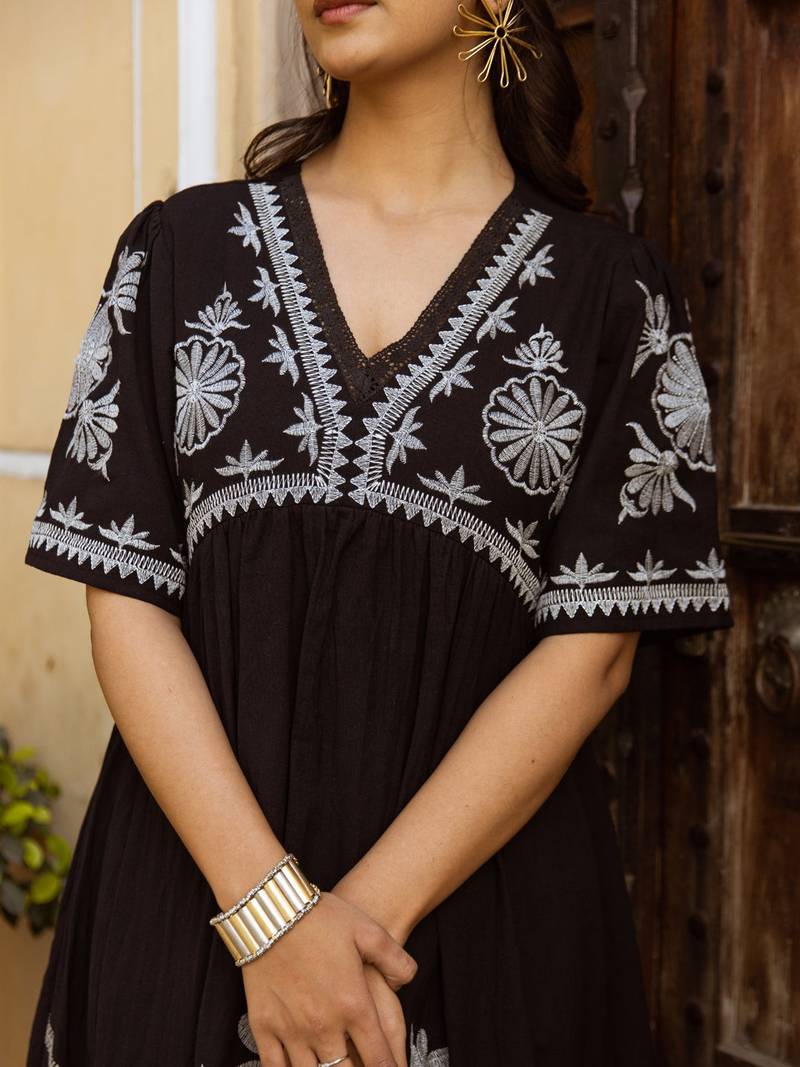 | Product Name | Black Embroidered Cotton Dress | |
