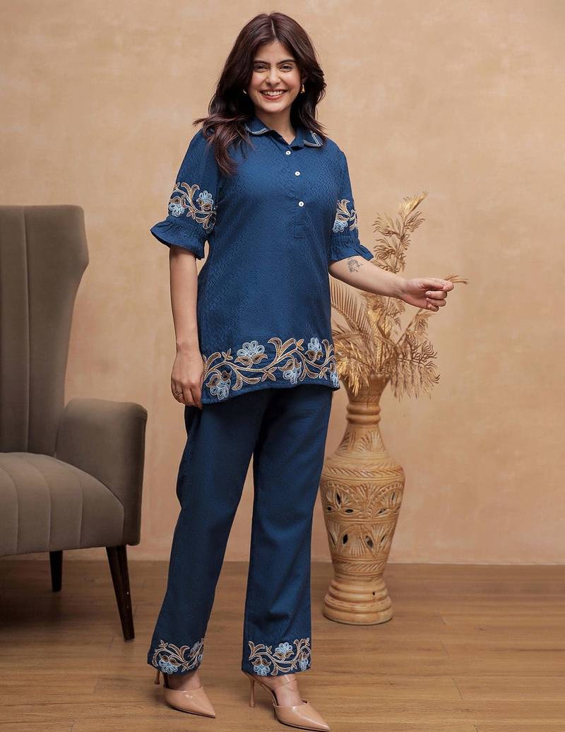 | Product Name | Blue Embroidered Cotton Co Ord Set | |
