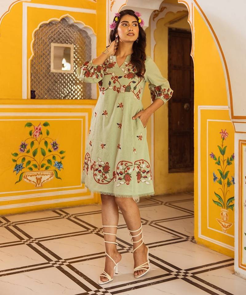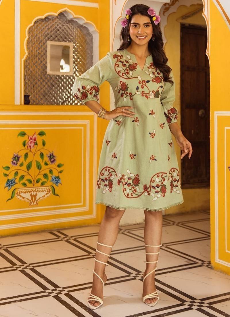 | Product Name | Green Embroidered Cotton Dress | |