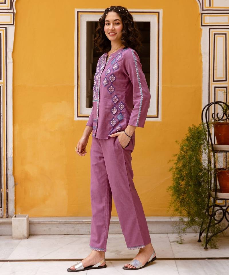 | Product Description | Pink Cotton Co Ord Set With Embroidered Details, Consisting Of Matching Top And Pants For Casual Or Party Wear. Comfortable And Breathable With Hand Wash Care. |