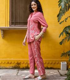 | Product Description | Pink Cotton Co Ord Set With Embroidery, Consisting Of Top And Pants, Made For Casual Wear And Holidays. Comfortable, Breathable Fabric With Hand Wash Care. |