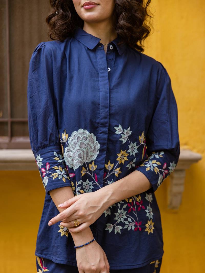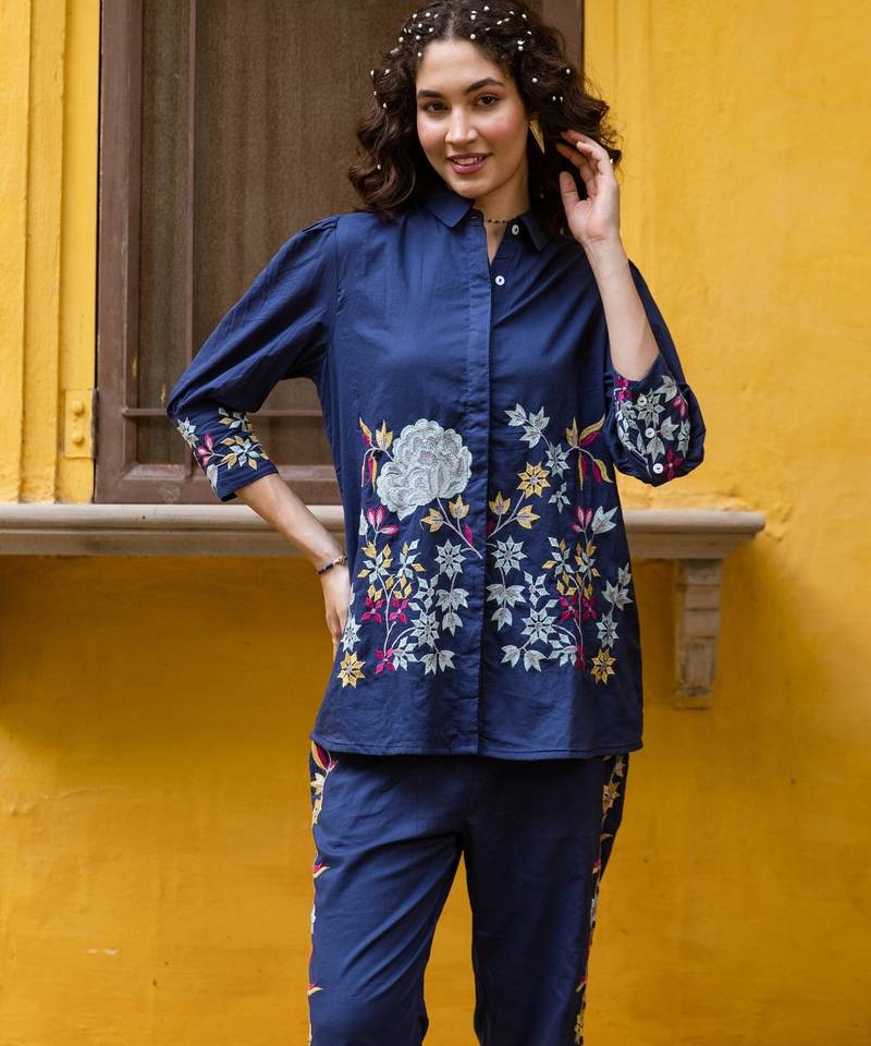 | Product Description | Soft Cotton Blue Co Ord Set With Embroidered Details, Perfect For Casual And Party Wear. Comfortable Breathable Fabric With Hand Wash Care. |