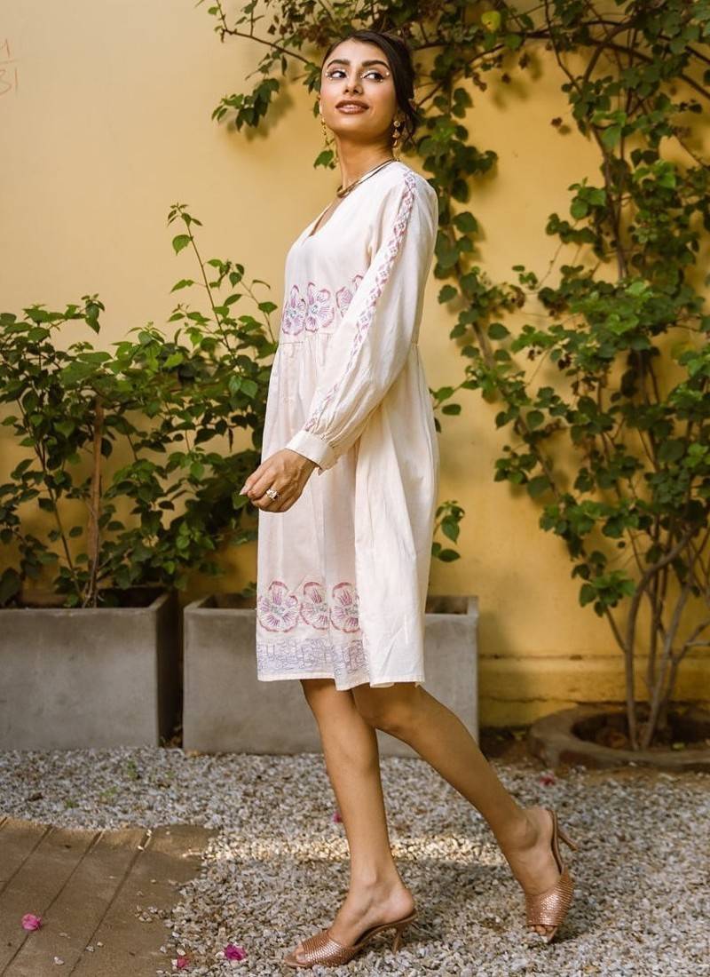 | Product Description | Off White Cotton Dress With Delicate Embroidery In Pink, Blue And Light Green. Perfect For Festive Occasions Or Casual Gatherings, Balances Subtlety And Style. |