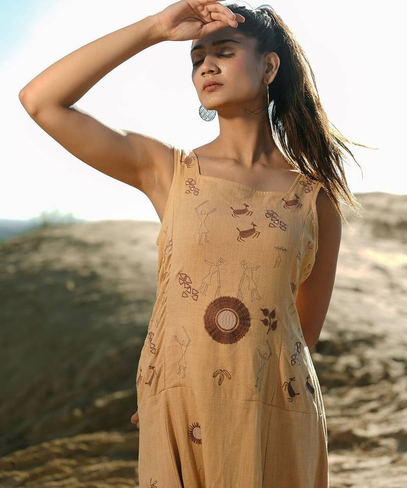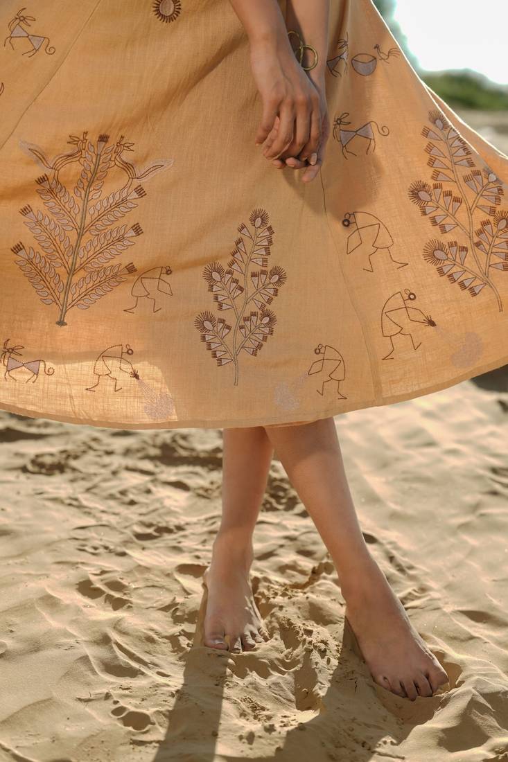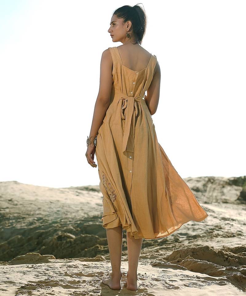 | Product Description | Soft Cotton Flax Mustard Yellow Dress With Intricate Tribal Inspired Schiffli Embroidery, Sleeveless, Lightweight And Breathable, Designed For Style And Comfort. |