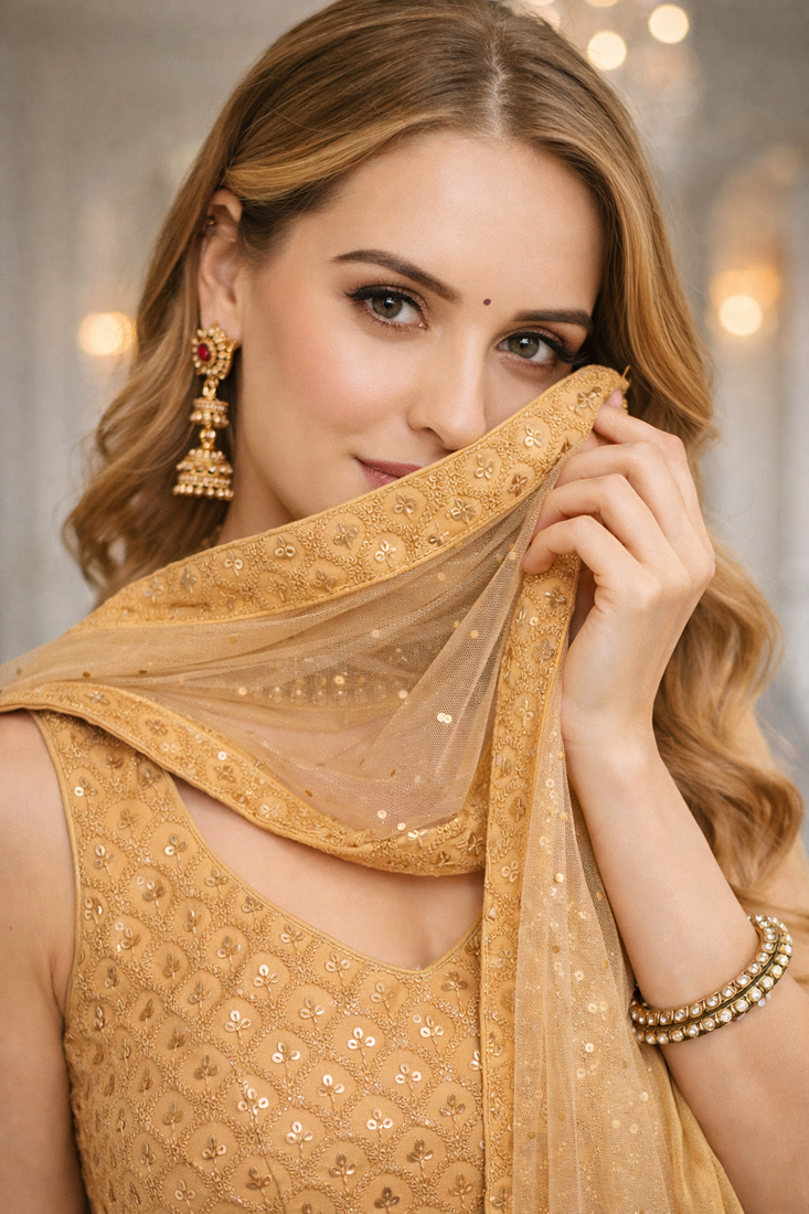 | Product Name | Beige Georgette Sequins & Thread Embroidered Lehenga Set With Choli And Dupatta | |