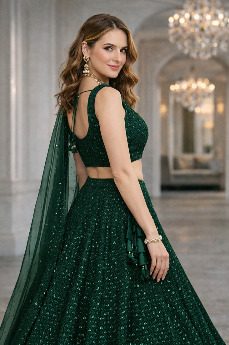 | Product Name | Green Georgette Sequins & Thread Embroidered Lehenga Set With Choli And Dupatta | |