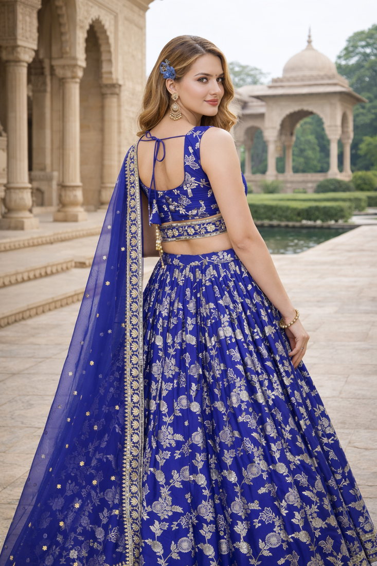 | Product Name | Royal Blue Dola Silk Sequins & Zari Embroidered Lehenga Set With Choli And Dupatta | |