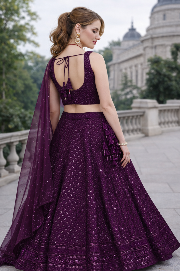 | Product Name | Wine Georgette Sequins & Thread Embroidered Lehenga Set With Choli And Dupatta | |