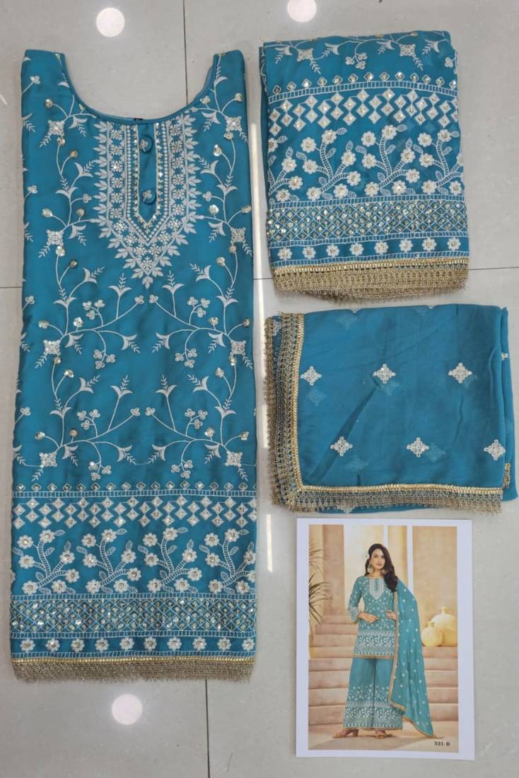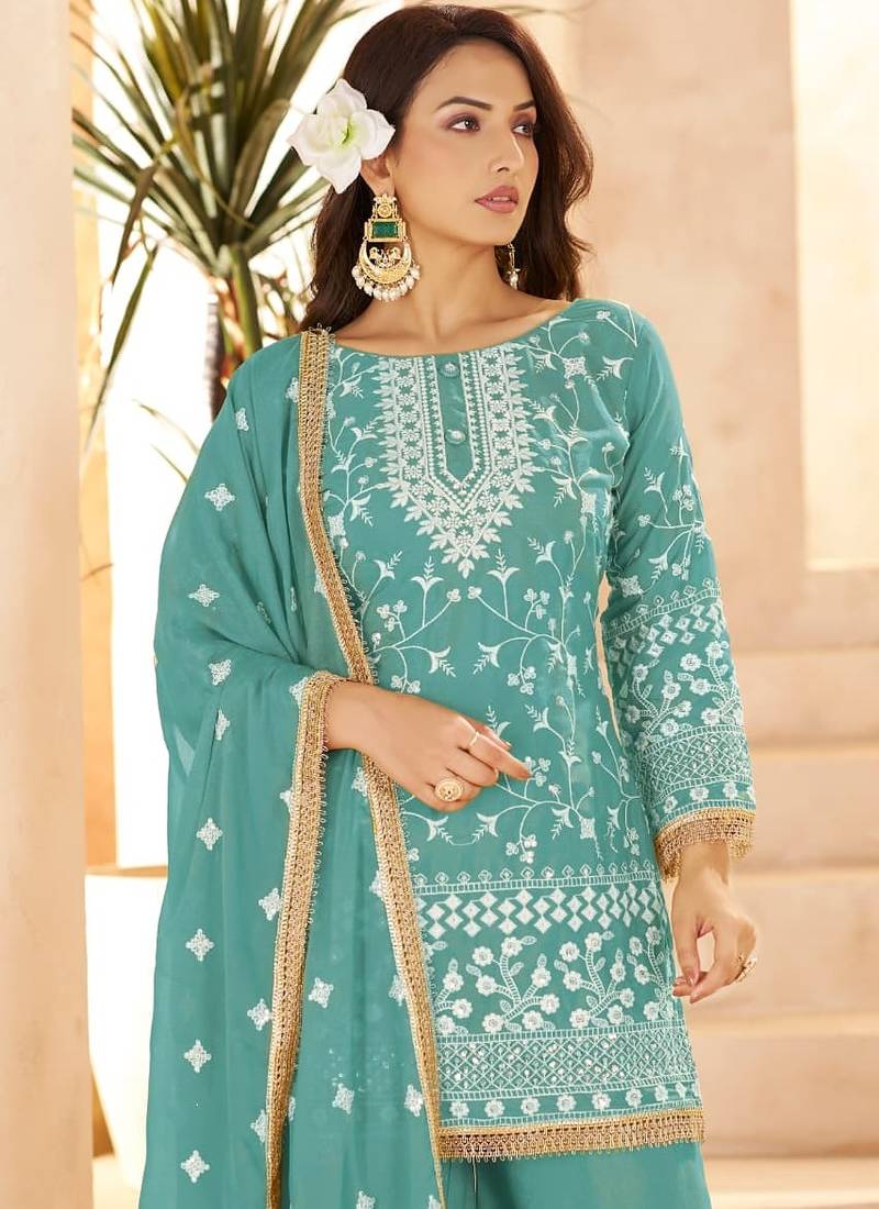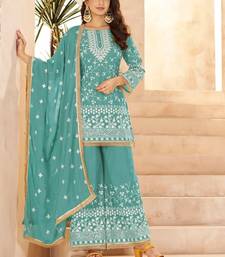 | Product Name | Aqua Blue Georgette Cotton Thread Sequins Work Palazzo Set Full Stitched Free Size | |