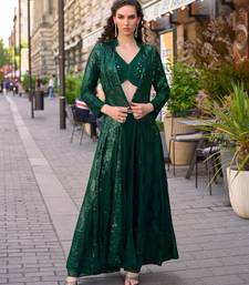 Bottle green heavy georgette indowestern crop top palazzo shrug set-full stitched free size