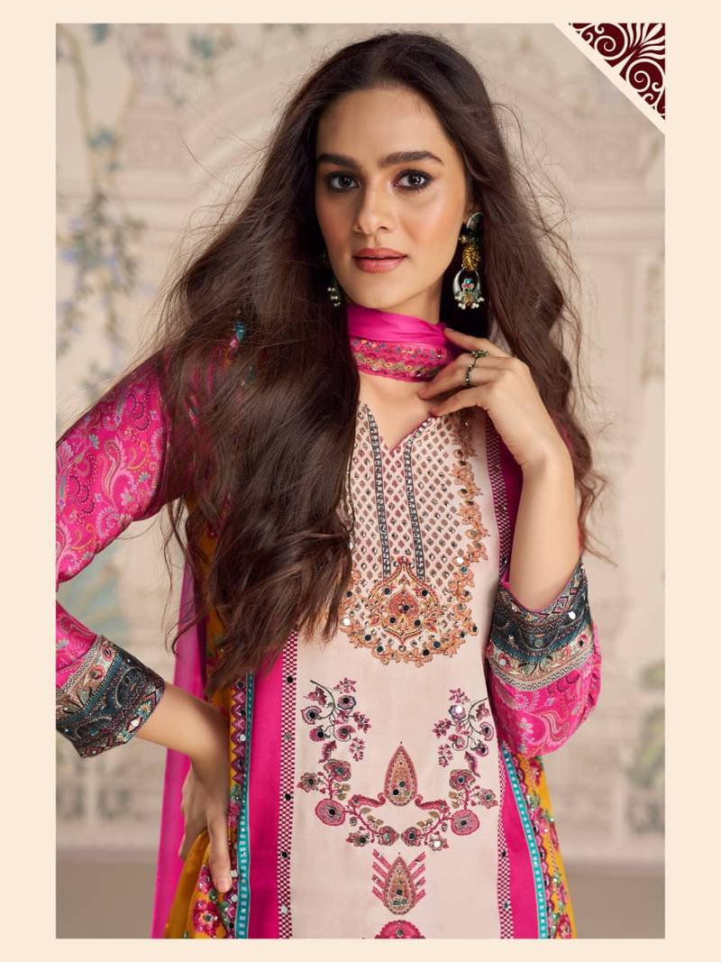 | • | Dupatta | : | Color- Pink / Fabric- Silk |