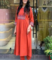 Orange embroidered cotton kurta and pant