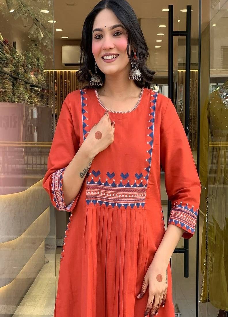 | Product Name | Orange Embroidered Cotton Kurta And Pant | |