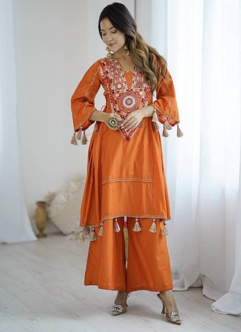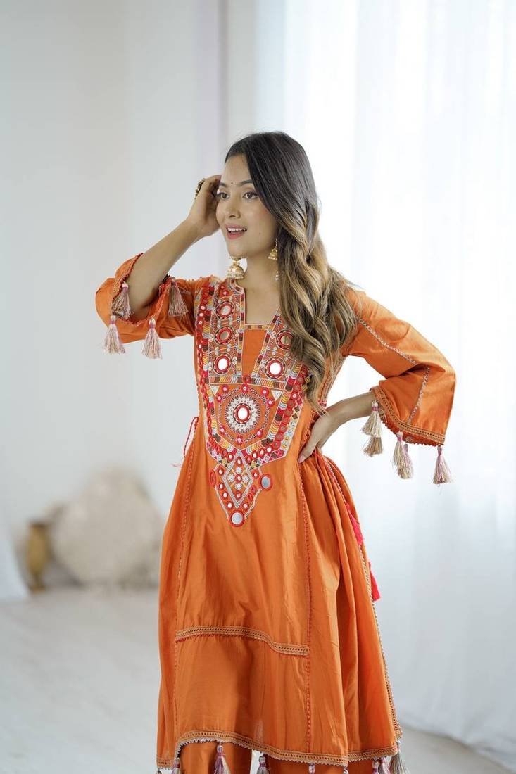| Product Name | Orange Embroidered Cotton Kurta And Pant | |