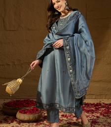 | Product Name | Women Blue Chanderi Woven Design Straight Kurta Trouser With Dupatta | |