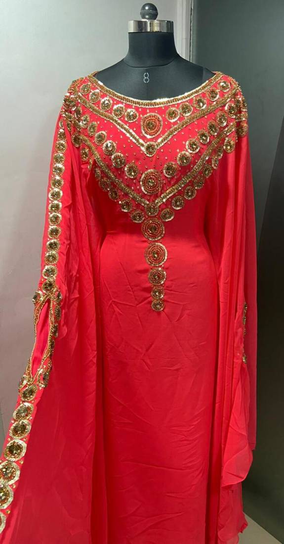 | Product Name | Coral Hand Beaded Islami Jalabiya Kaftan | |