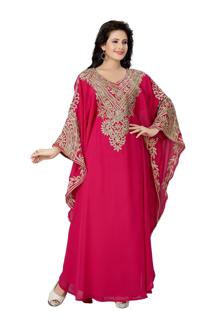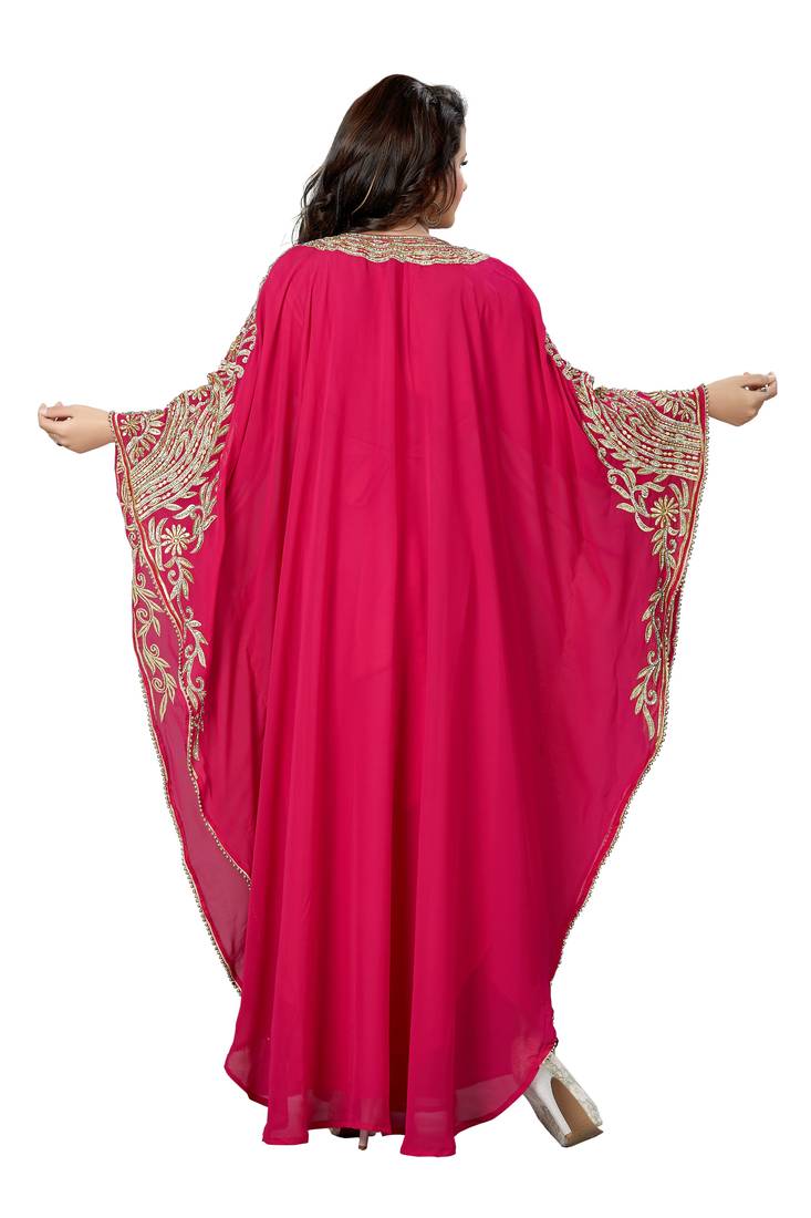 | Product Description | Pink Farasha Kaftan, Made With Finest Gold Embroidery And Silver Stone Work |