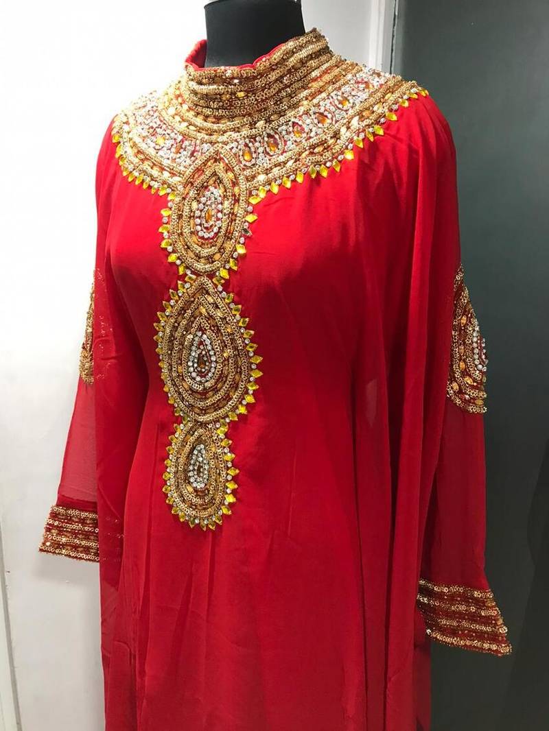 Red royal fancy gold beading work farasha kaftan