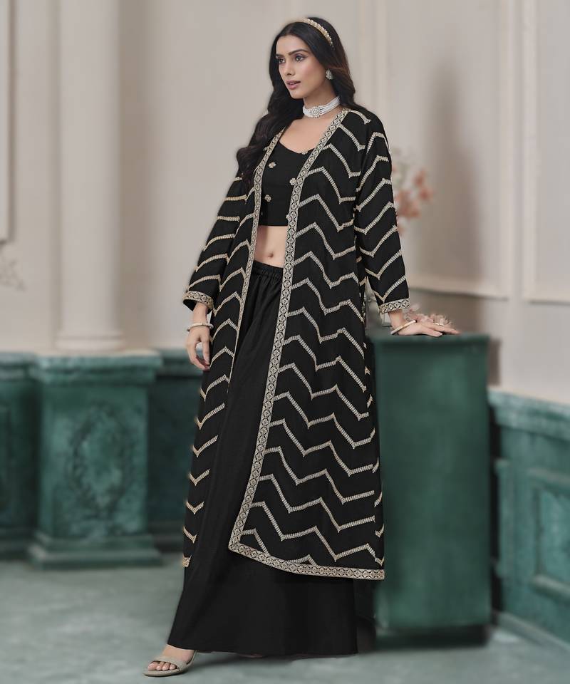 | Product Name | Black Chinon Embroidered Top Blouse With Palazzo | |