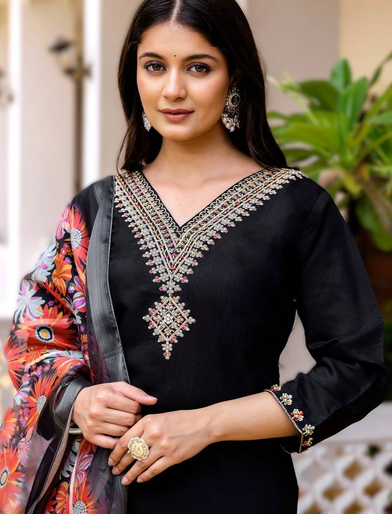 | Product Name | Black Viscose Embroidered Kurta Jacquard Organza Dupatta | |