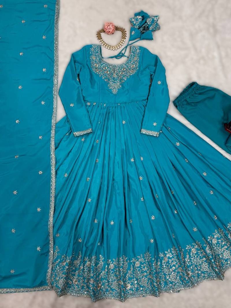 | Product Name | Blue Silk Thread & Sequins Embroidered Anarkali Pant With Dupatta | |