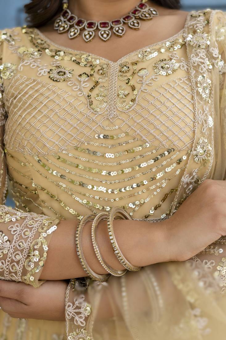 | Product Name | Cream Embroidered Net Lehenga Set With Choli And Dupatta | |