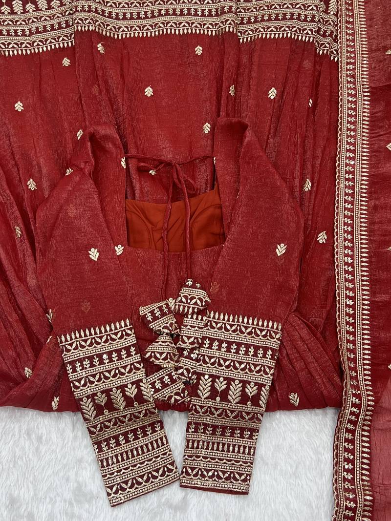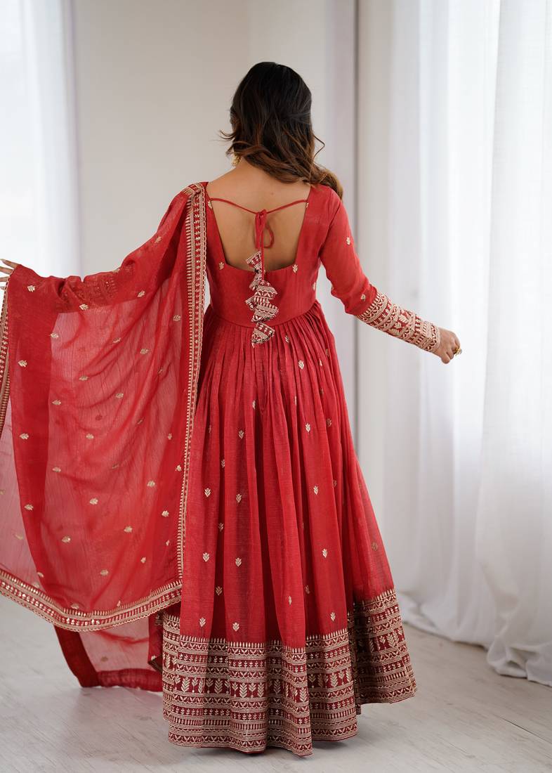 | Product Name | Designer Pure Crunchy Silk Fully Flared Embroidered Anarkali Gown With Fancy Dupatta |Handwork Beads & Jari Work | |