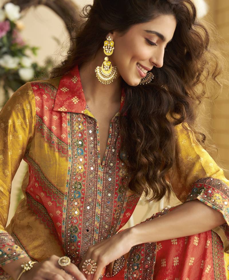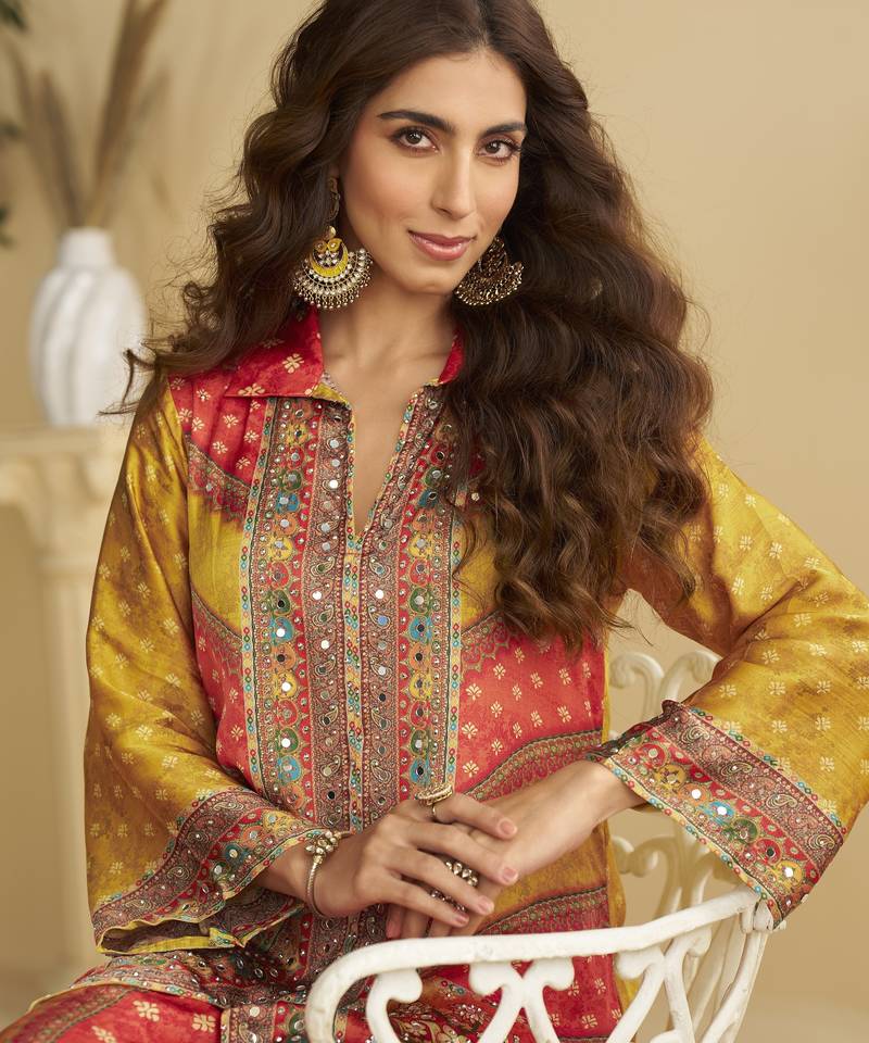 | Product Name | Designer Satin Cord Set With Mirror And Stone Work For Party And Wedding | |
