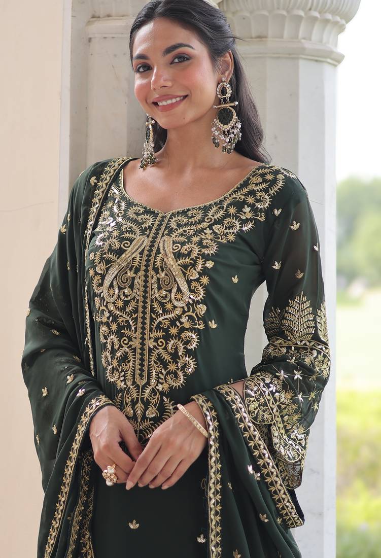 | • | Kameez | : | Color- Green / Fabric- Faux Georgette |
