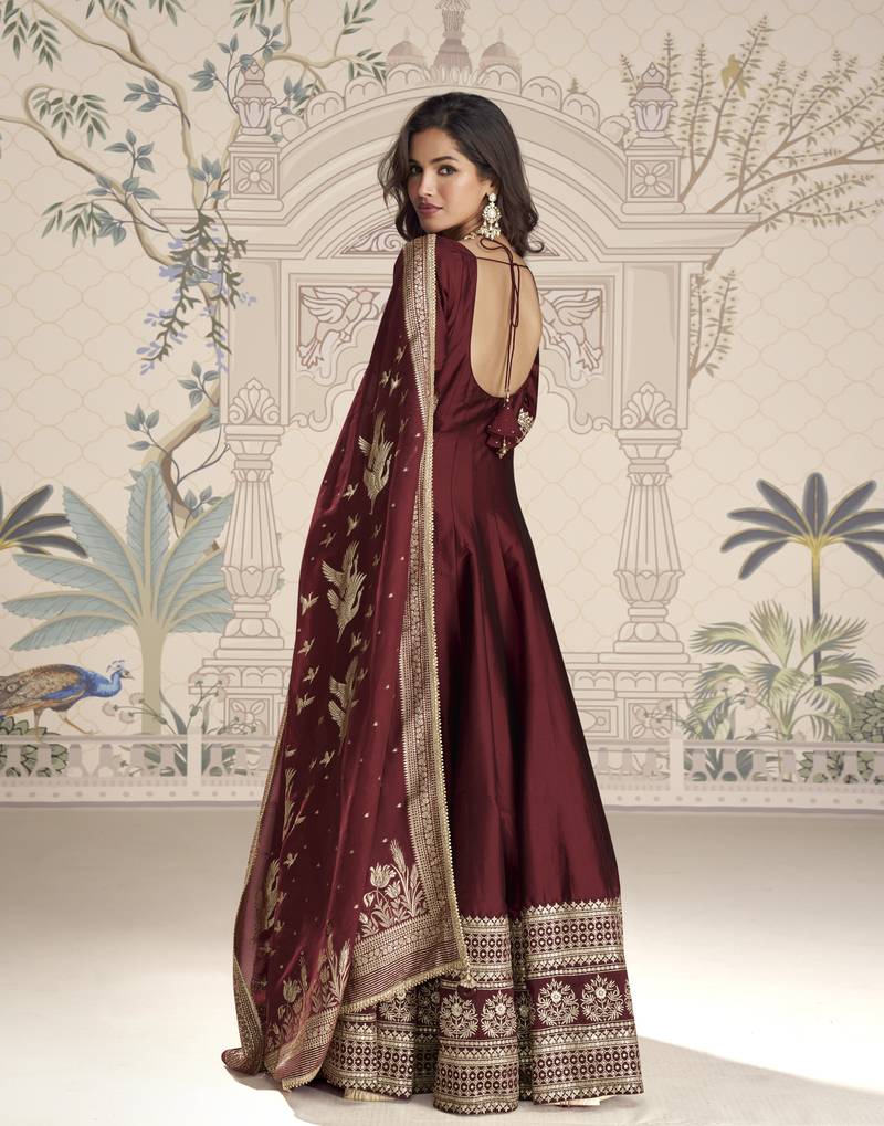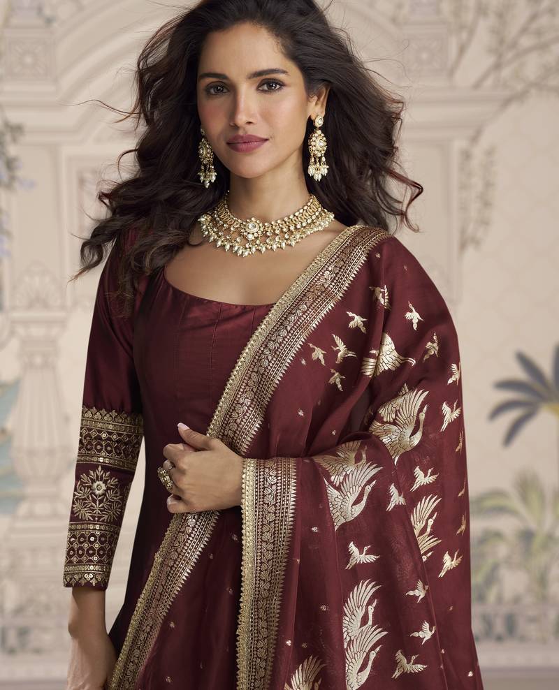 Luxury vichitra silk anarkali with sequence work & jacquard dupatta – festive::Party outfit stitched