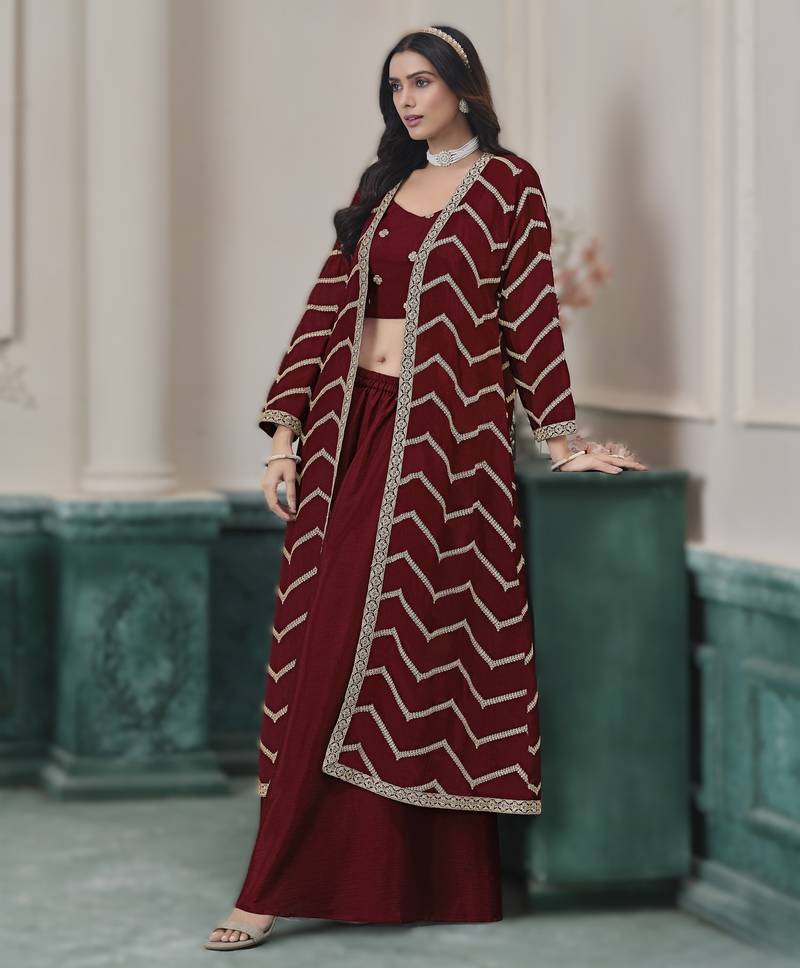 | Product Name | Maroon Chinon Fabric Embroidered Top And Palazzo | |
