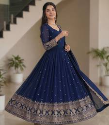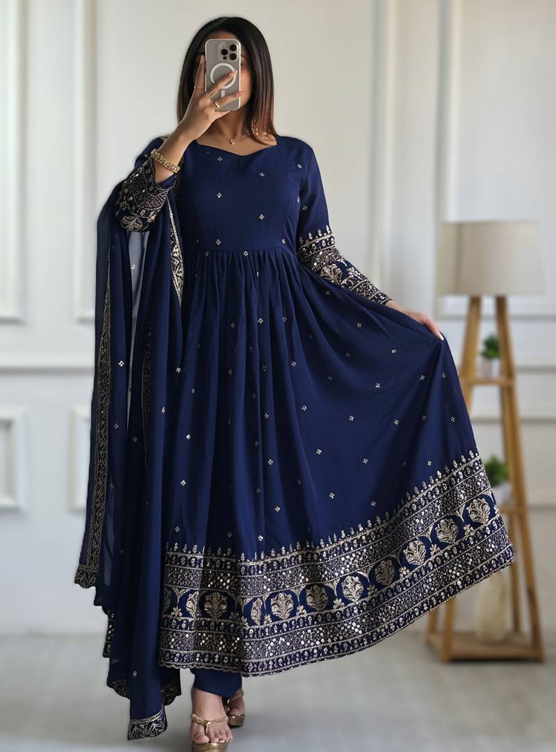 Navy blue embroidery vichitra silk anarkali set stitched