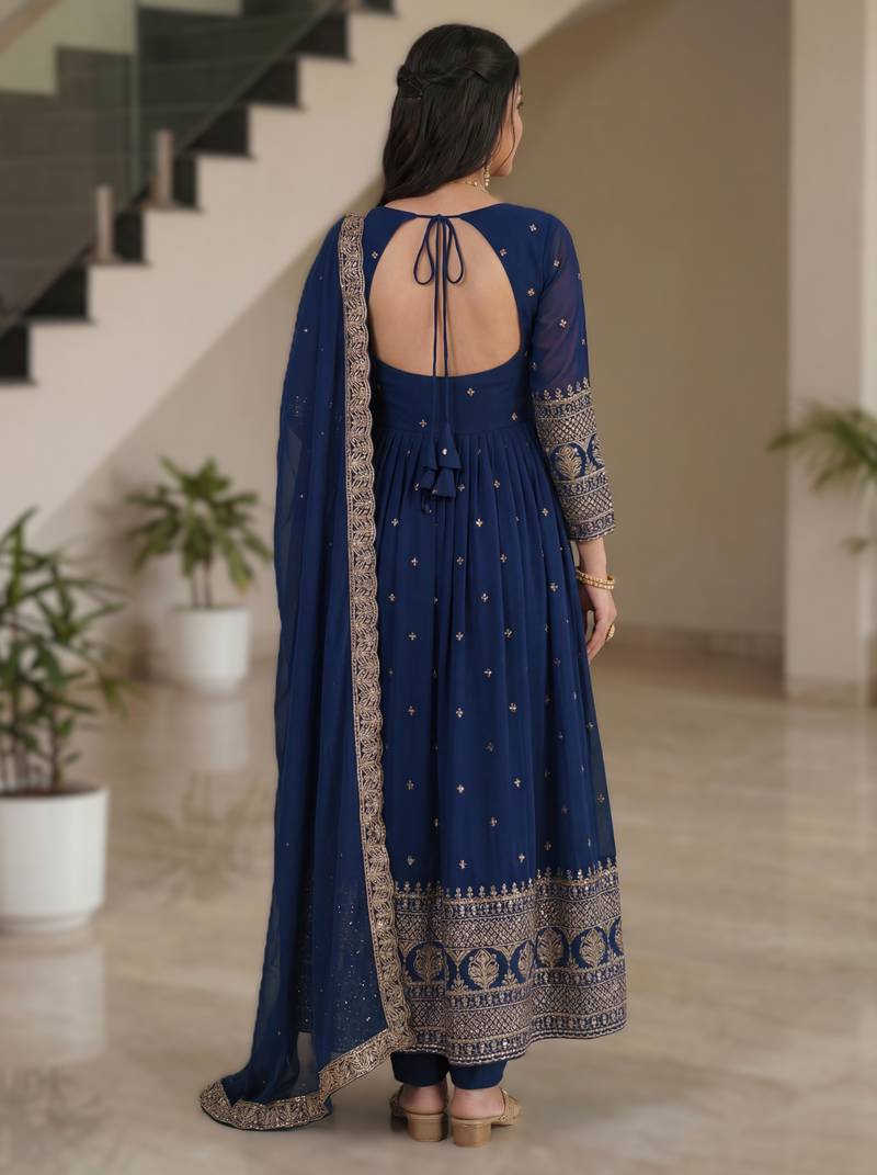 | Product Name | Navy Blue Embroidery Vichitra Silk Anarkali Set | |
