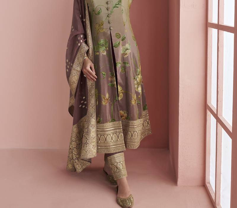 Onion silk embroidered anarkali with pant and dupatta stitched