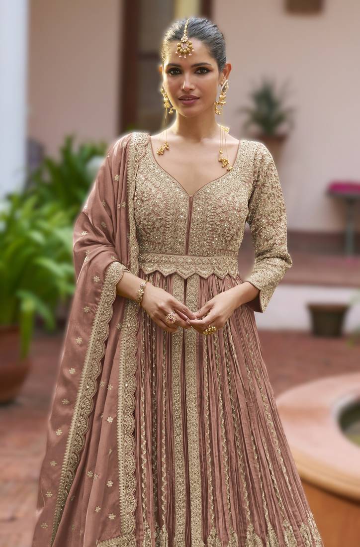 | Product Name | Peach Chinon Embroidered Top Dupatta & Skirt Set | |