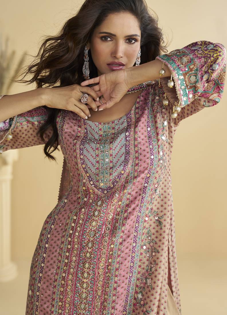 | Product Name | Pink Crepe Silk Printed Kurta Palazzo Set | |