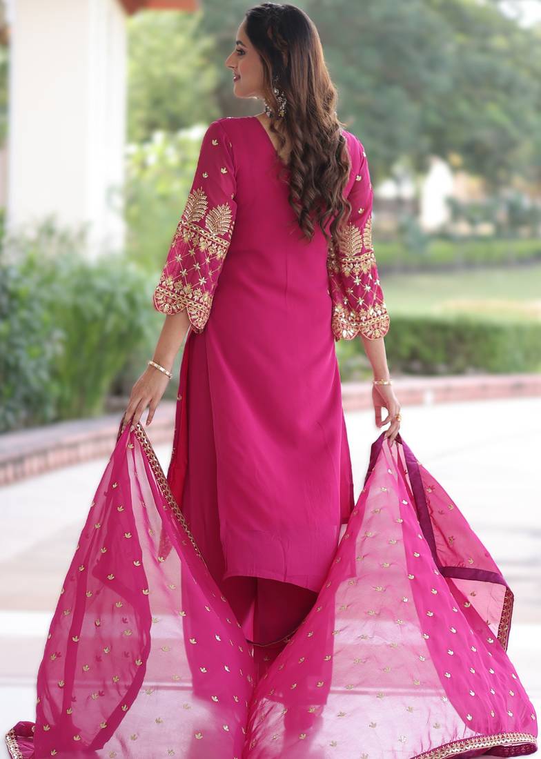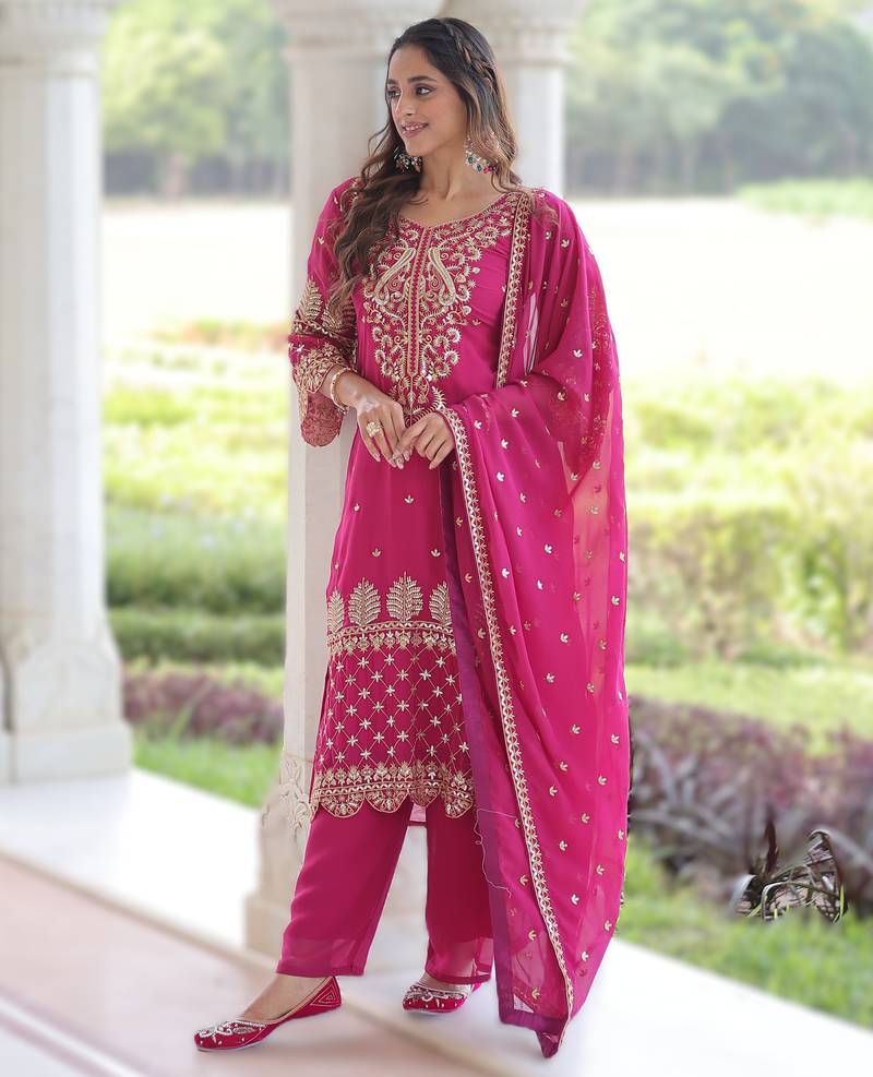 | Product Name | Pink Faux Blooming Embroidered Kurti Pant With Dupatta | |