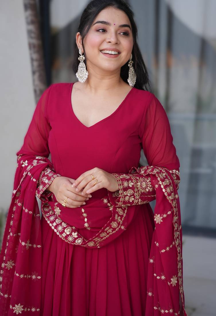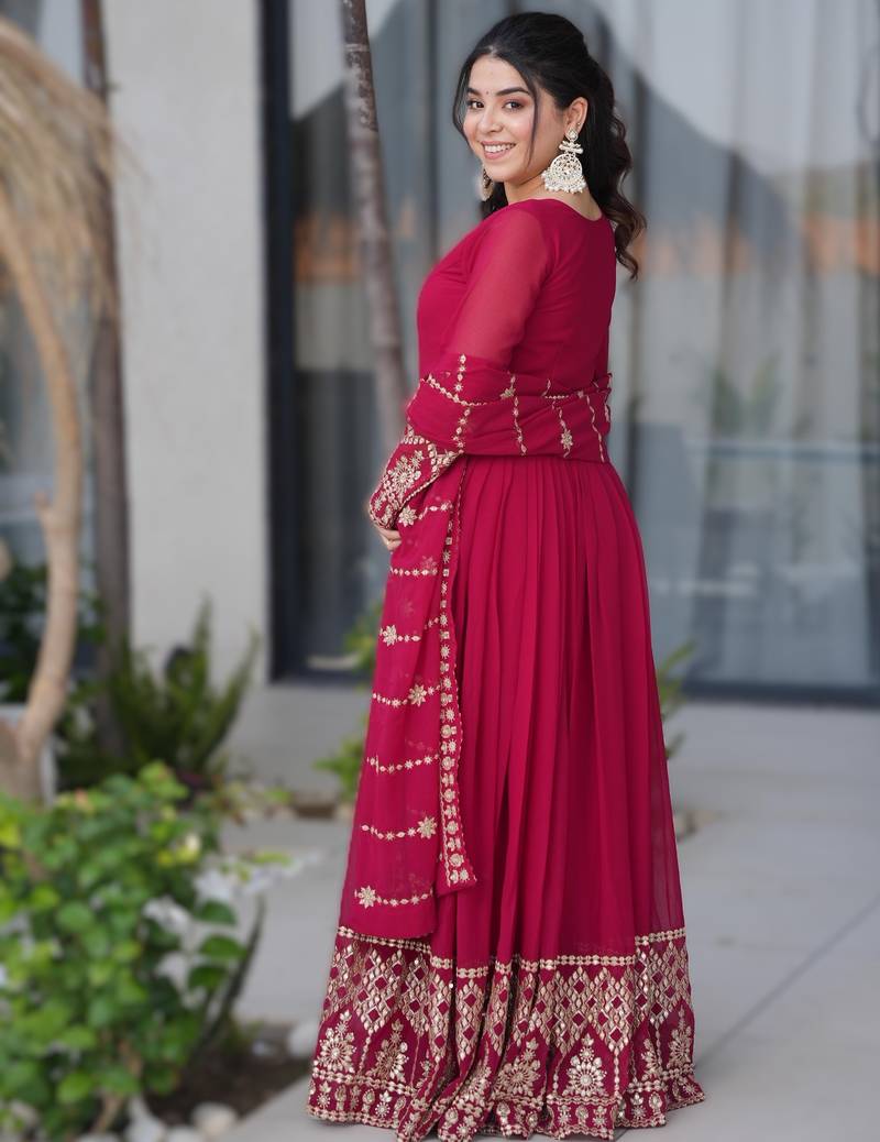 Pink georgette heavy embroidered anarkali with dupatta stitched