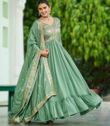 | Product Name | Pista Green Vichitra Silk Embroidered Anarkali Gown With Dupatta In Pista Green & Lavender | |
