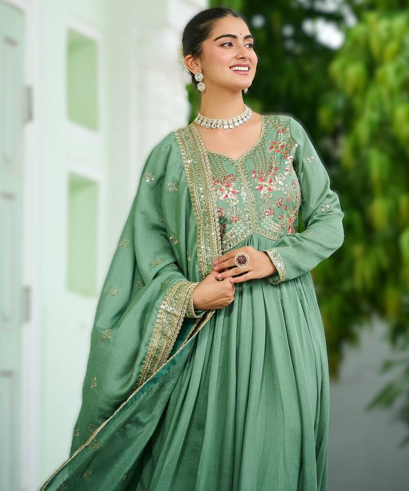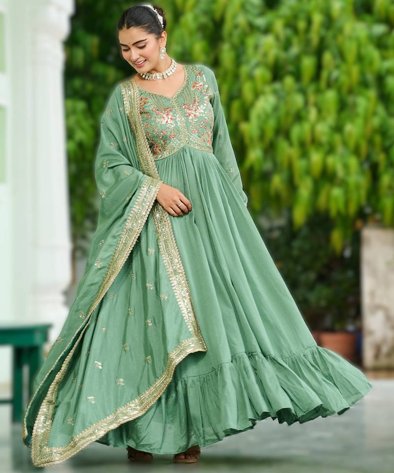 | Embellish | Add Timeless Elegance To Your Festive Wardrobe With This Beautifully Crafted Anarkali Gown With Dupatta, Designed To Give You A Rich And Graceful Look. | |