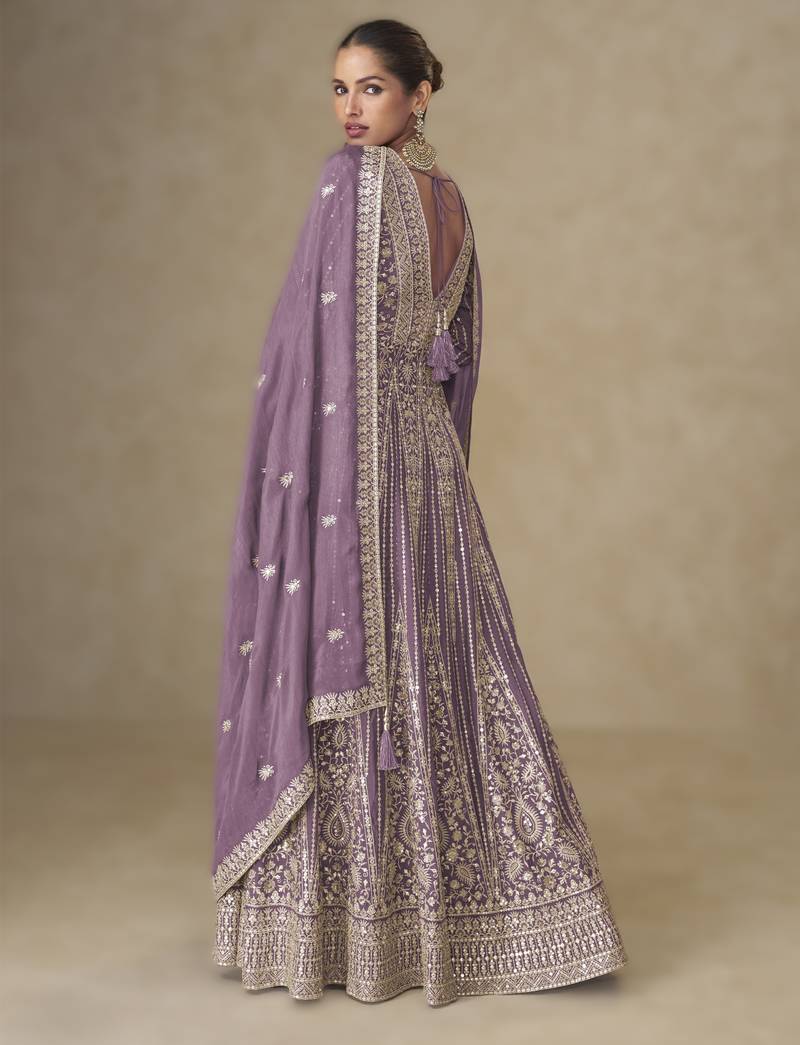 | Product Name | Purple Silk Embroidered Anarkali With Pant And Dupatta | |