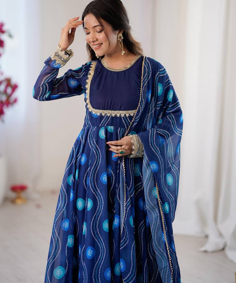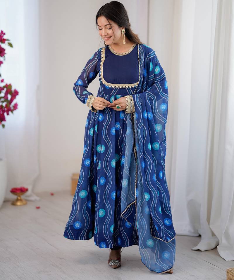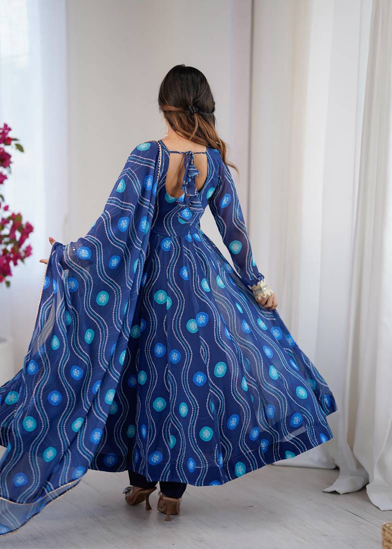 Pure soft fox georgette bandhani kalicut anarkali suit with 4+ meter flair & dupatta – ready to wear stitched