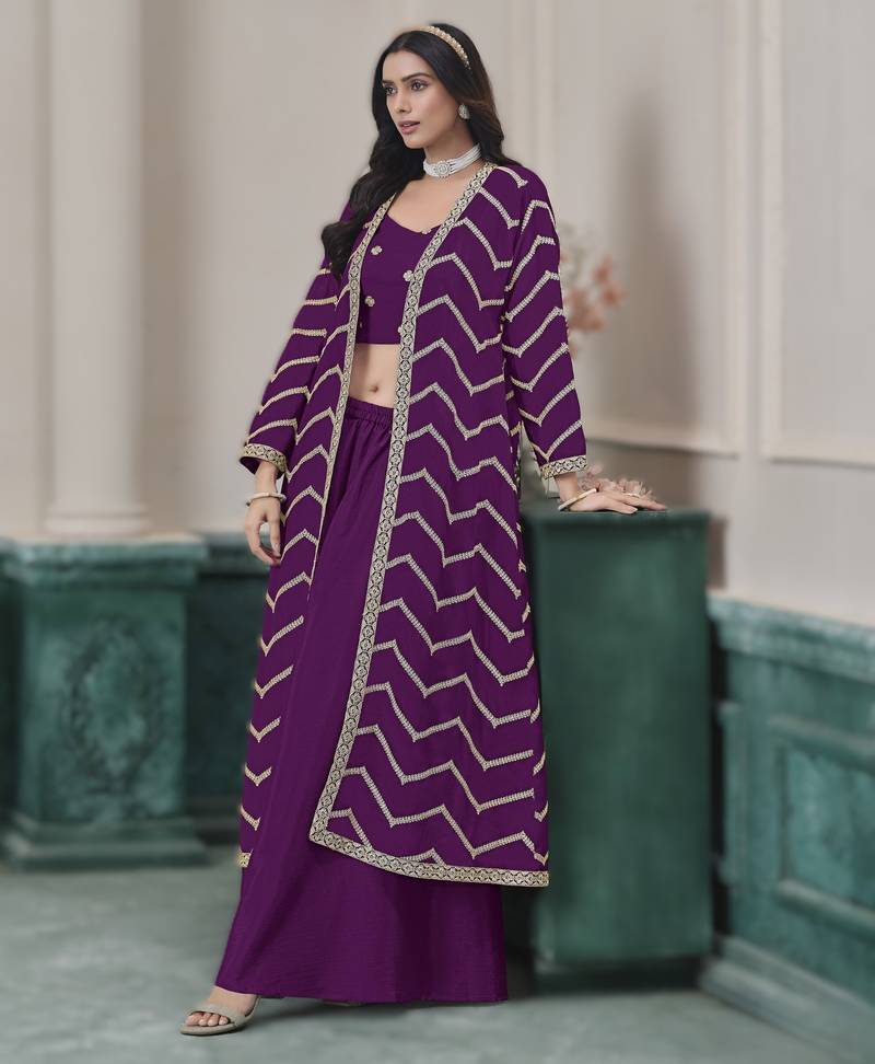 | Product Name | Purple Chinon Fabric Embroidered Top And Palazzo | |