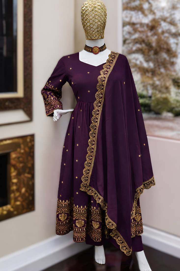 | Product Name | Purple Embroidery Vichitra Silk Anarkali Set | |