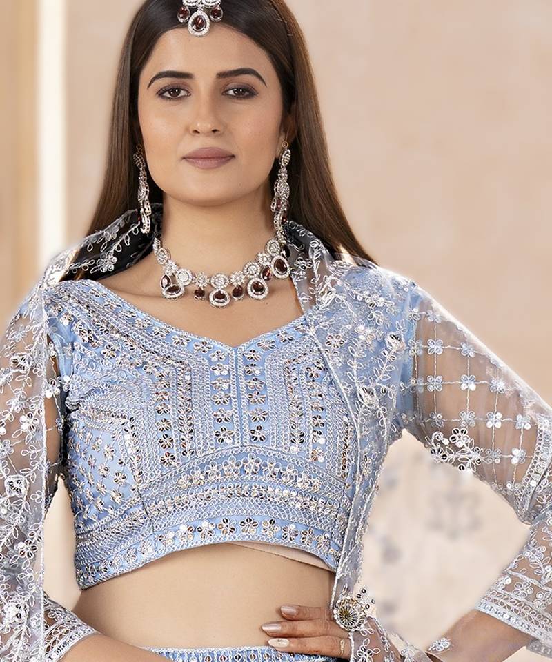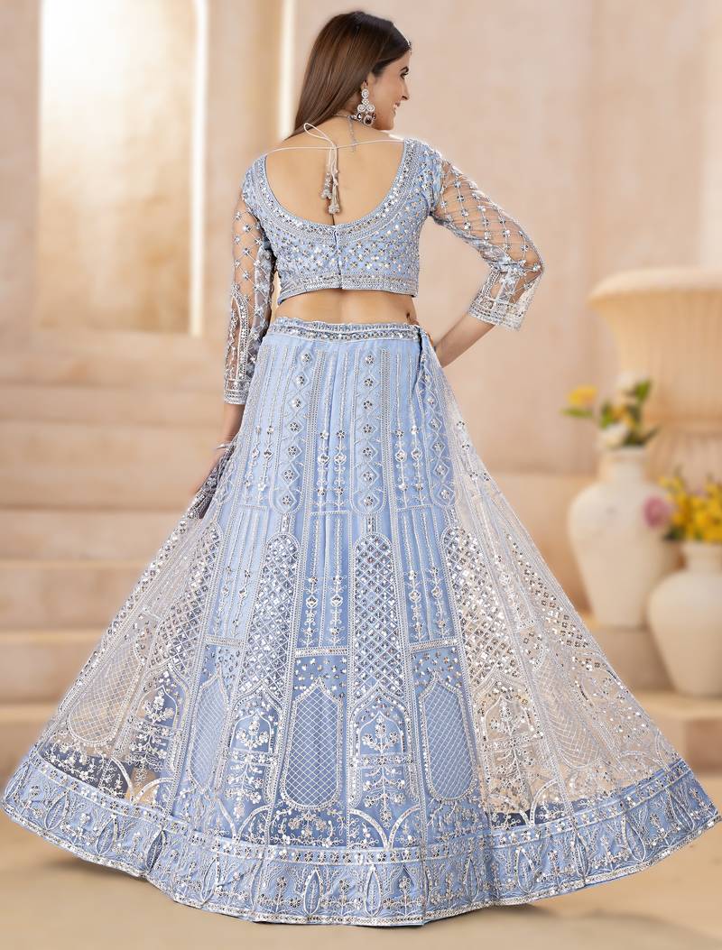 | Product Name | Sky Blue Net Embroidered Lehenga Set With Choli And Dupatta | |