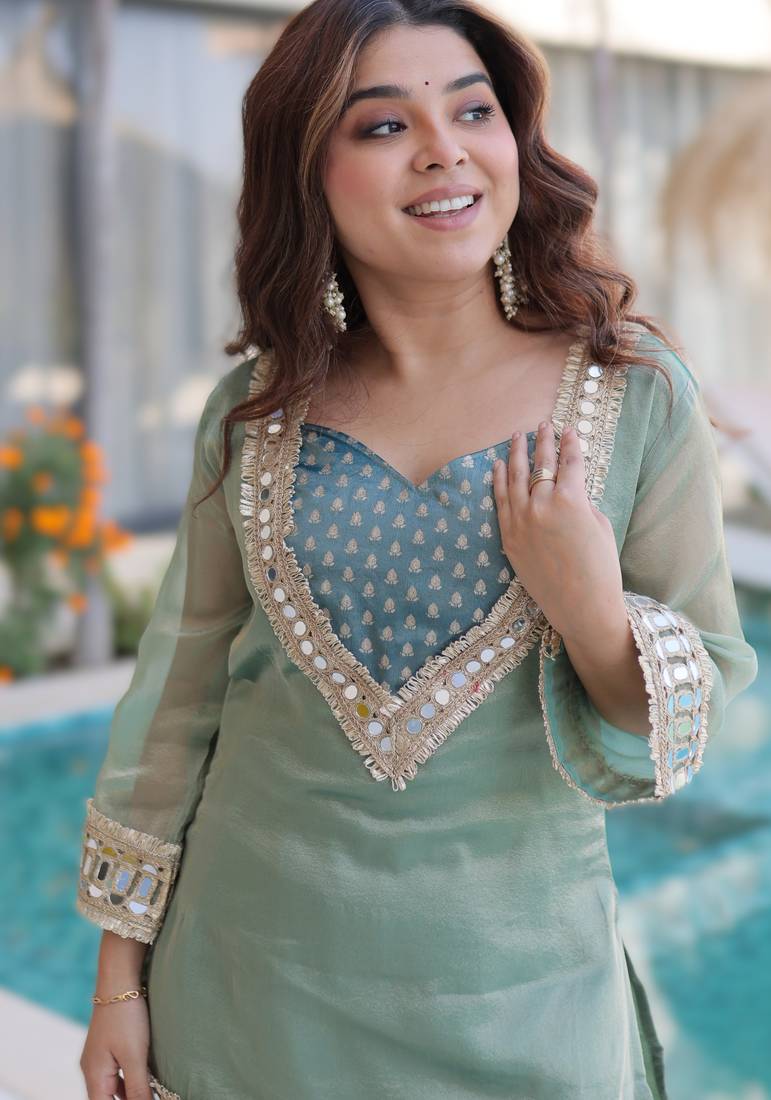 | Embellish | Feel Like Royalty Every Day With This Stunning Ensemble! Crafted With Premium Fabrics And Exquisite Mirror Work, This Set Combines Comfort, Style | |