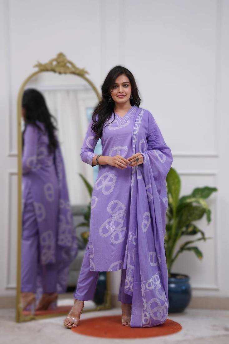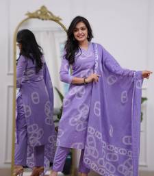 Voilet chanderi embroidered kurta bottom printed dupatta stitched