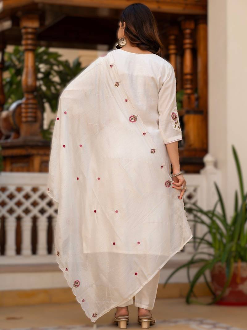 | Product Name | White Viscose Mango Silk Embroidered & Sequins Work Kurta Set | |