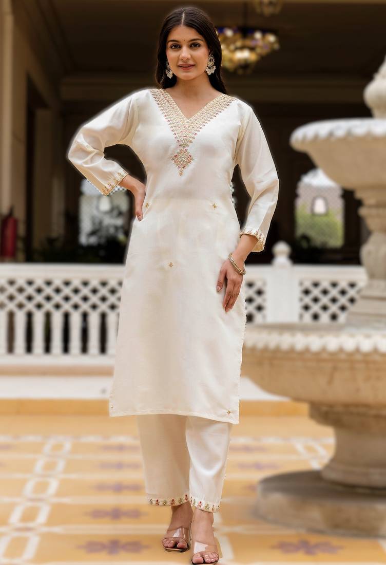 White viscose embroidered kurta jacquard organza dupatta stitched