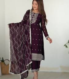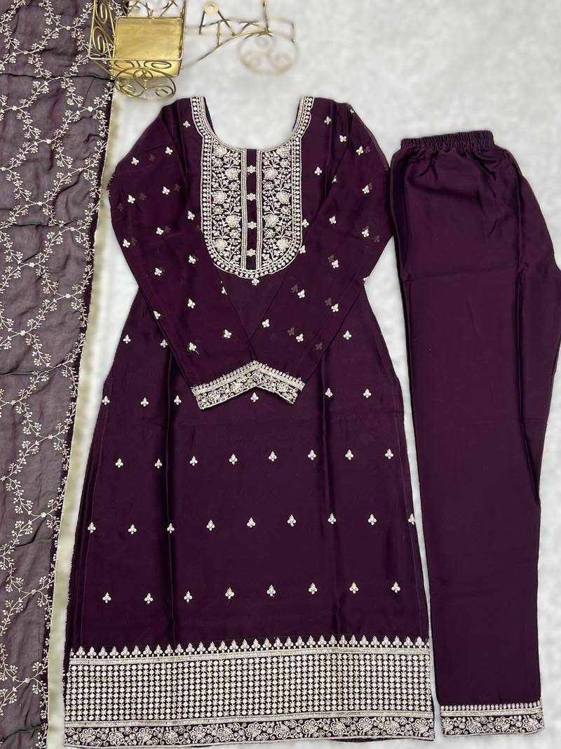 Wine ready-to-wear pure blooming rangoli silk straight fit kurta set with dupatta & trousers – wine::Maroon stitched